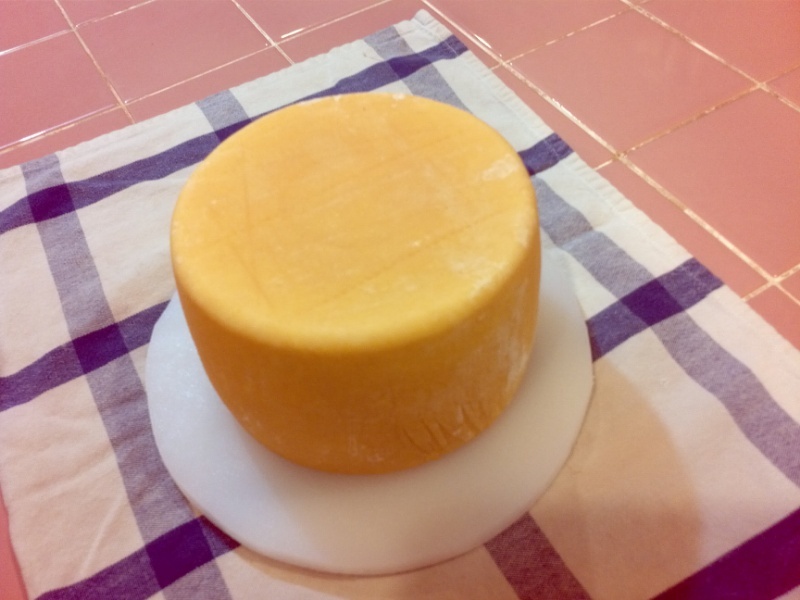 The parrano is just short of 6 months old, so time to taste. I had a cheese cave (dorm fridge) failure about a month after I waxed it. Temp went to 80 F for a short time. Took the wax off to check it, and then cut in half and vacuum bagged.